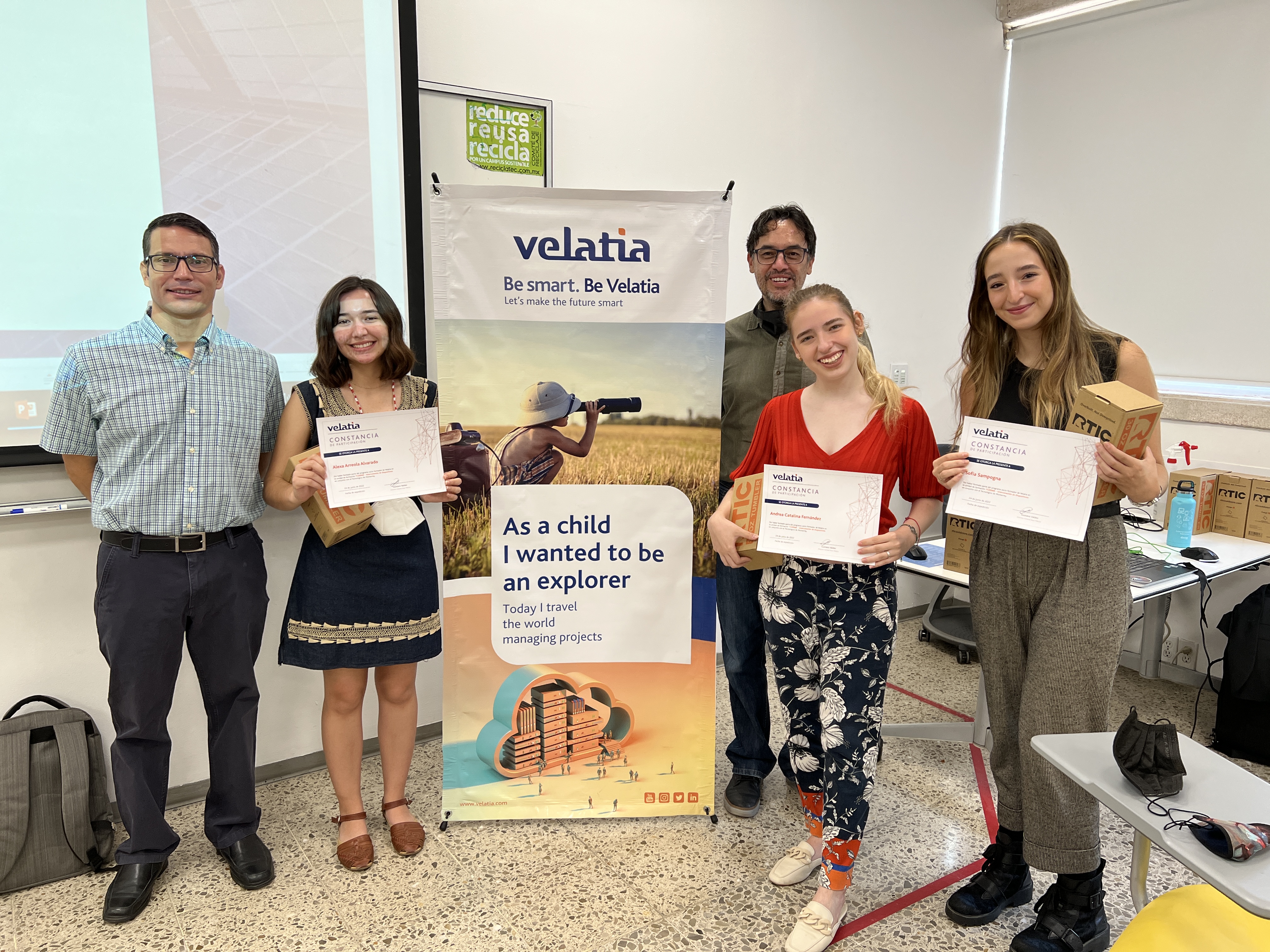 During the challenge, the students considered the different advice given by the engineers during the classes and mentoring sessions for the development and presentation of their “high level” projects, as Gustavo Valdez defined them. This close university-industry collaboration, where professional engineers and future engineers work side by side, is recognised by the Monterrey Institute of Technology, which has officially listed Velatia as its training partner.